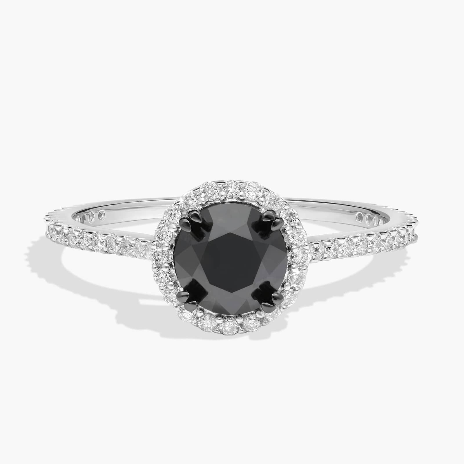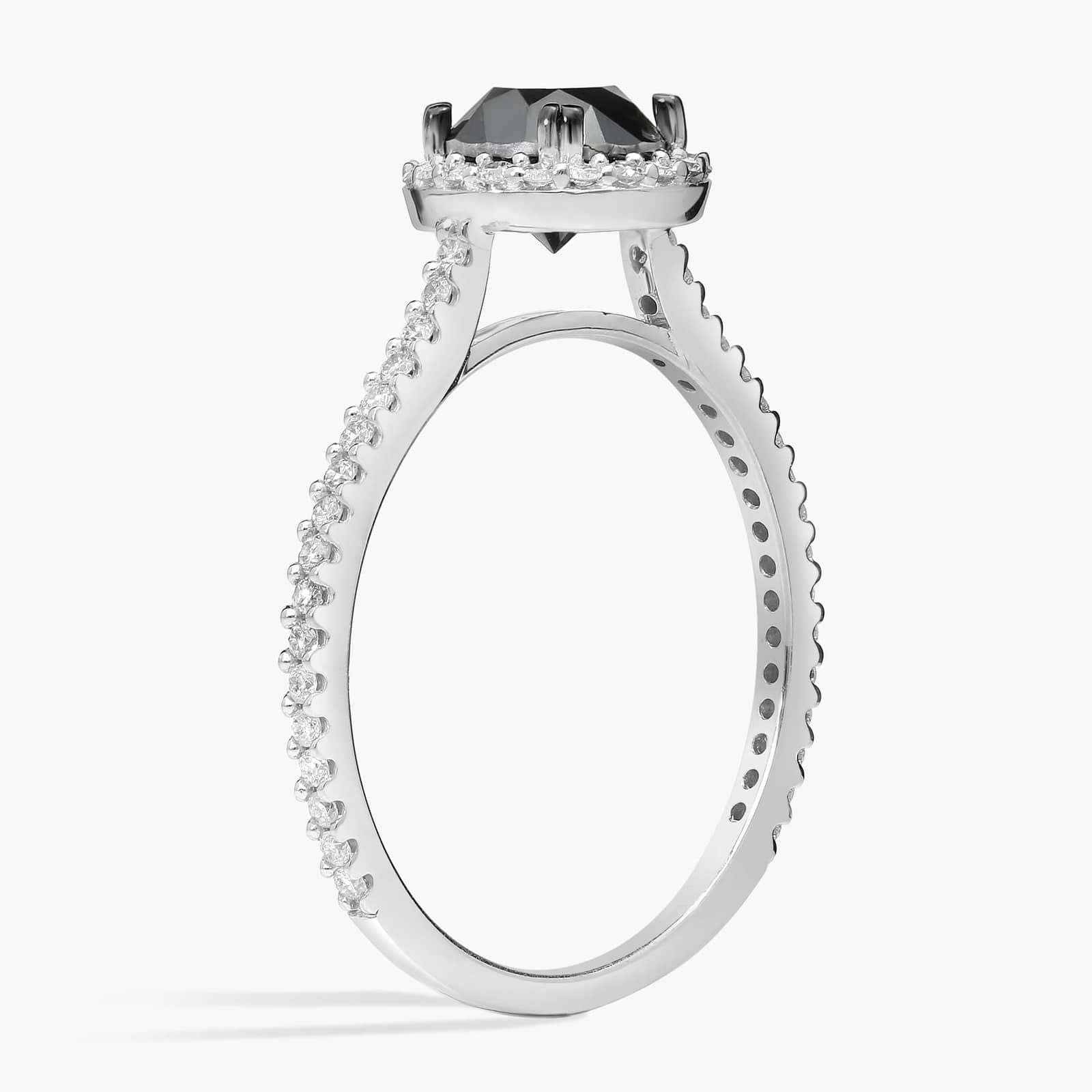 A captivating black diamond halo silver ring crafted to express bold elegance through contrast and brilliance, featuring a deep black center diamond embraced by a luminous halo of sparkling white diamonds set entirely in polished silver. The refined oval silhouette highlights the dramatic beauty of the center stone while the surrounding diamonds enhance depth and radiance, creating a timeless yet modern statement that stands out effortlessly.